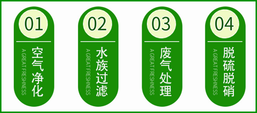 適用于大風(fēng)量,低濃度工廠有機(jī)廢氣(三苯及有毒有害氣體)治理。適用于室內(nèi)空氣凈化,餐飲油煙廢氣處理??照{(diào),冰箱,復(fù)印機(jī)等除異味。并可做為催化劑載體。用于氣相吸附類(lèi)活性炭,苯、甲苯、二甲苯、丙酮、油氣、CS2等有機(jī)溶劑吸附與回收.香煙過(guò)濾嘴、裝修除味、室內(nèi)空氣凈化(甲醛,苯等有害氣體的去除),工業(yè)用氣的凈化(如CO2,N2等)、石化行業(yè)生產(chǎn)、天然氣凈化、脫硫、除臭、廢水的治理.生化、油漆工業(yè)、地下場(chǎng)所、皮革工廠、動(dòng)物飼養(yǎng)場(chǎng)所的空氣凈化、脫臭.煙道氣的臭氣吸附,硫化物吸附,汞蒸汽的去除、降低戴奧辛的生成。