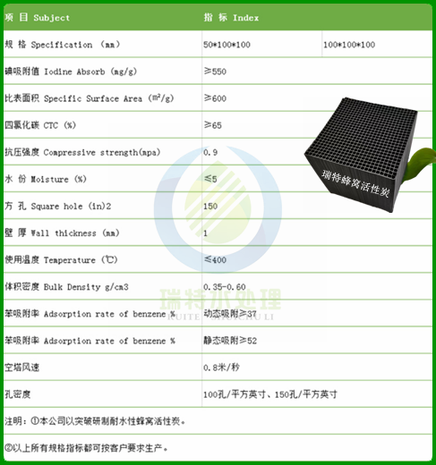 以上蜂窩活性炭產(chǎn)品信息由鞏義市瑞特水處理材料有限公司技術(shù)部整理發(fā)布,緊供大家參考。